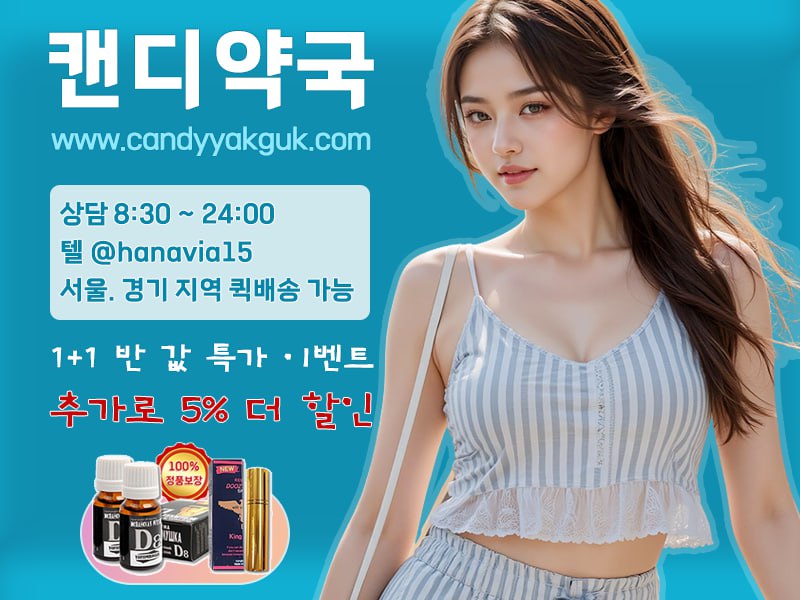 ??캔디약국??은 고객님의 소중한 시간을 위해 프리미엄 퀵배송 서비스를 제공하며, 1+1 반 값 특가 이벤트로 부담 없이 제품을??할 수 있습니다. 사은품으로 칙칙이와 여성흥분제도 준비되어 있어, 부부 함께 혜택을 누릴 수 있습니다. 지금 바로 https://www.candyyakguk.com을 방문하거나 텔레그램 @hanavia15로 상담해 보세요. 발기부전과 조루에서 해방되어 화끈한 사랑과 건강한 남성 라이프를 즐기시길 바랍니다!