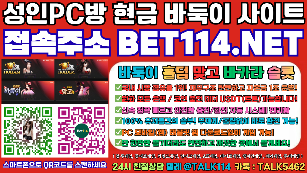 ◆ 바둑이 홀덤 슬롯 맞고 바카라 게임 바로가기 https://bet114.co.kr ◆